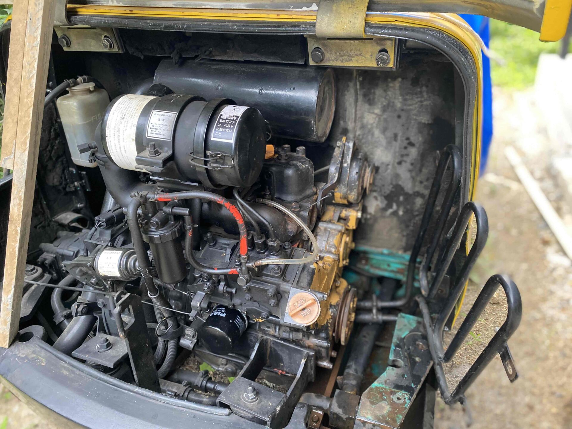 ヤフオクで購入後、遊びで数分乗ってみましたが、その際は少し煙がでていましたがディーゼルエンジンなので排気ガスだと思いエンジン内を確認をしなかったのが今回のミスの一つです。