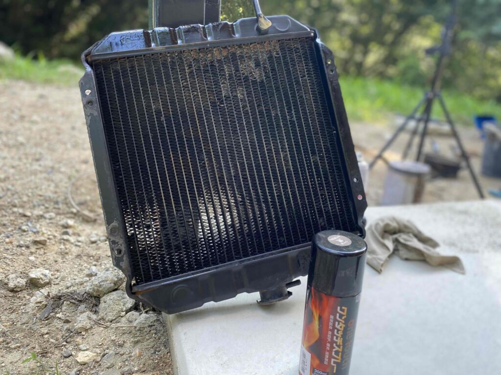 外装のカバーが邪魔でラジエーターは簡単には外れませんが、頑張りました。