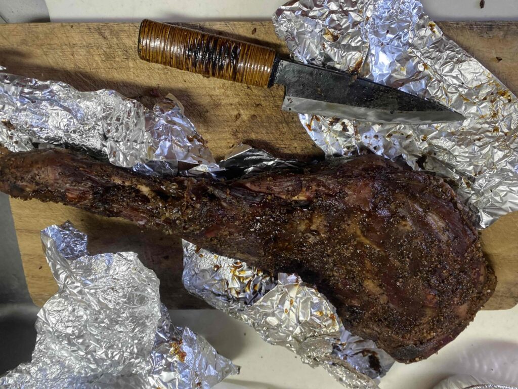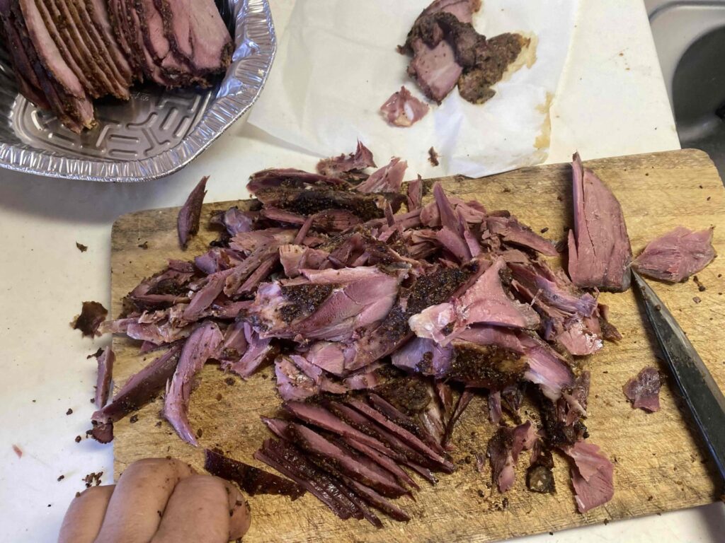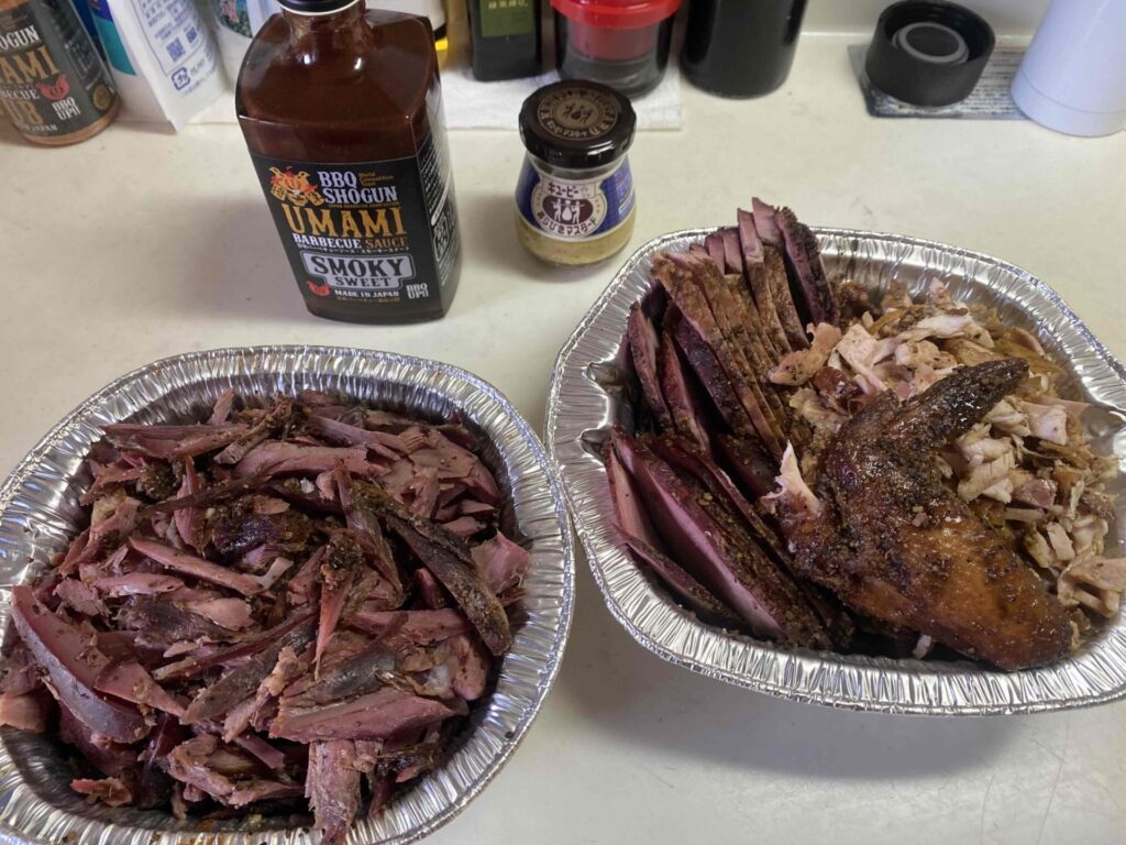 長時間の低音調理で完全に燻製になっています。