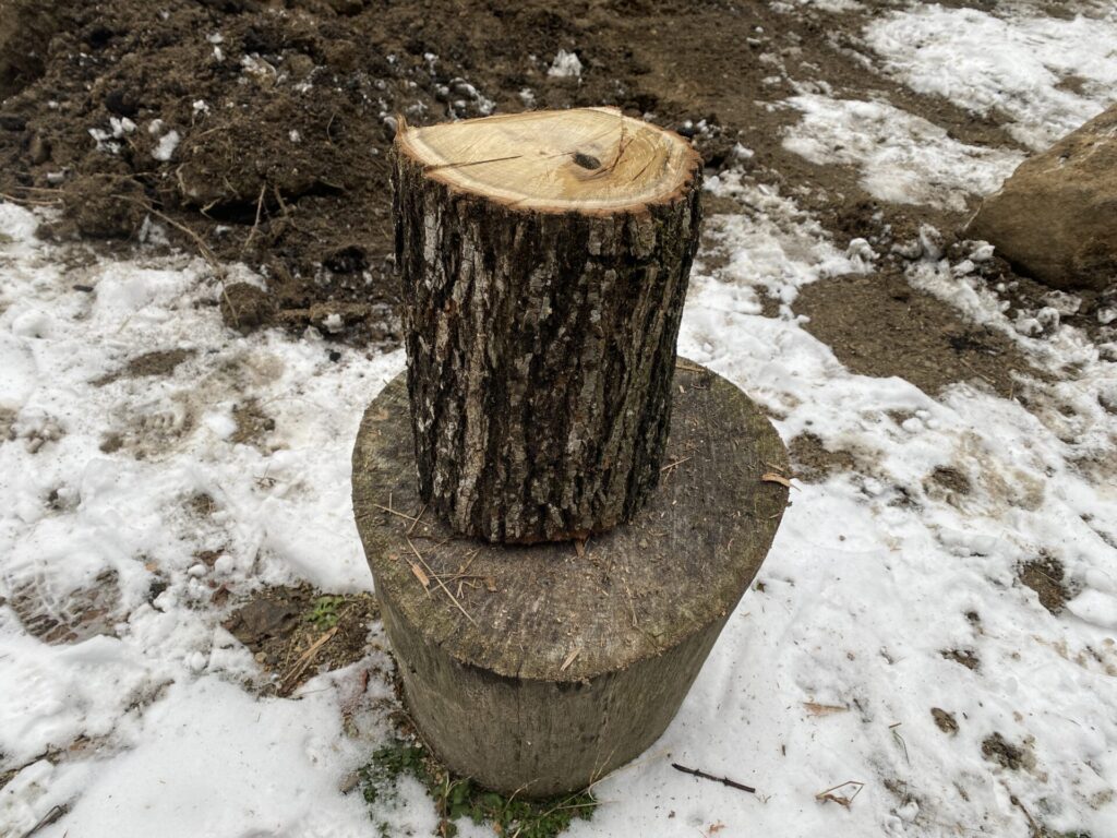 元々持っていた軽い斧では、このような丸太には太刀打ちできないので、重量斧を購入しました。