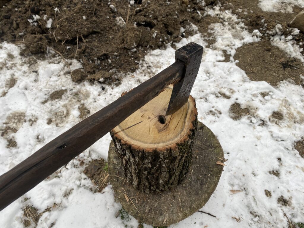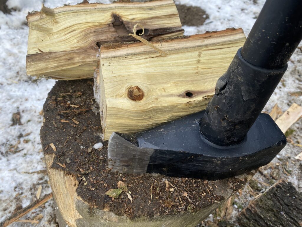 今回は、真冬の雪が積もる山奥で、重量ハンマーの斧を使って薪を割った感想を書いていきます。