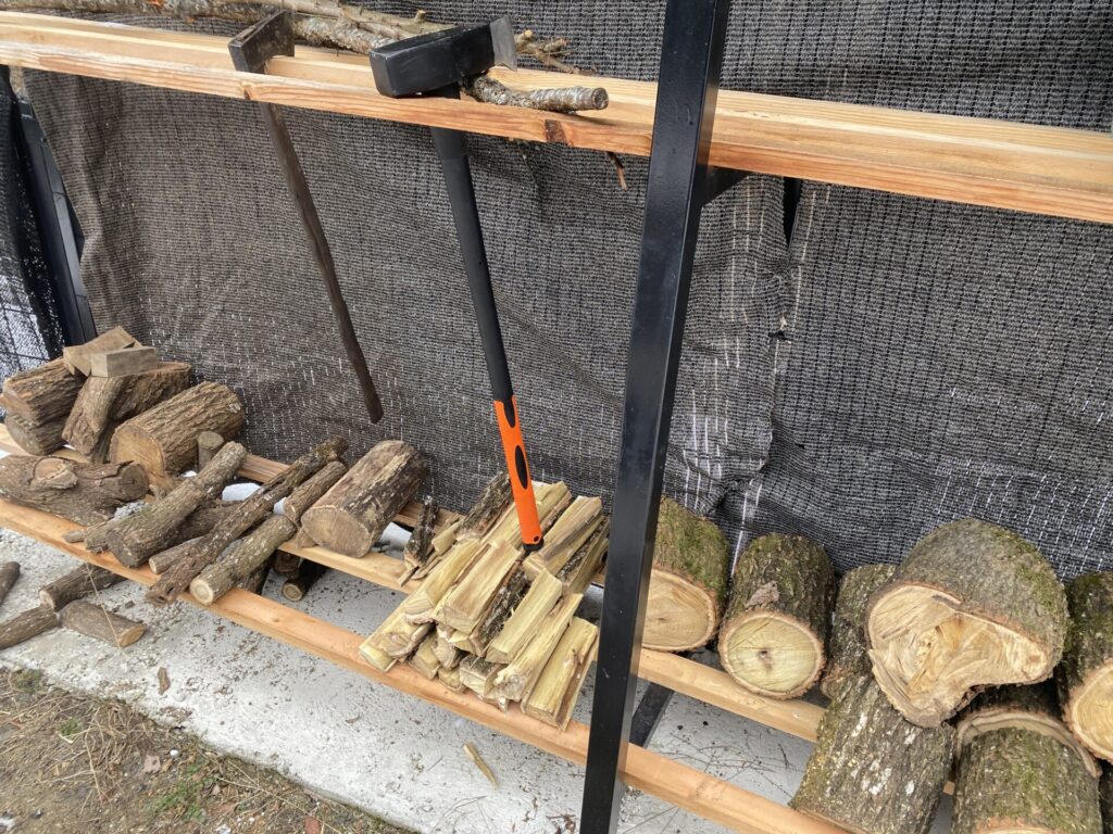 一時は、エンジン式の薪割りきを購入を検討していましたが、斧で十分大量生産が可能だと思います。体力作りにも良いですしね。