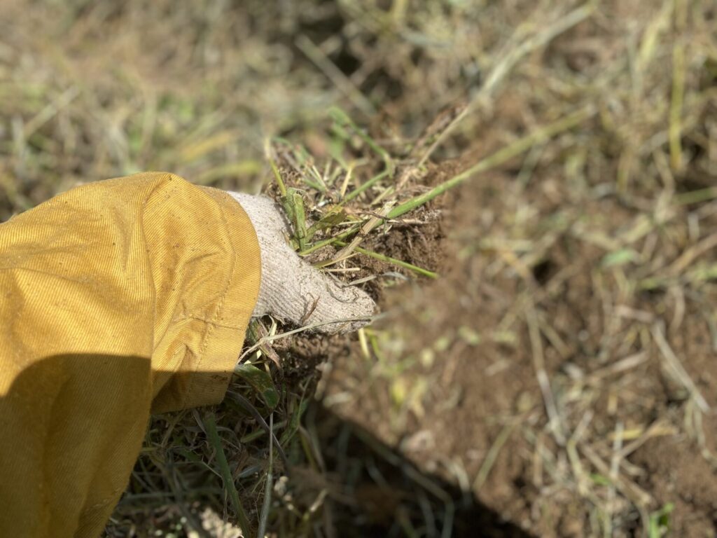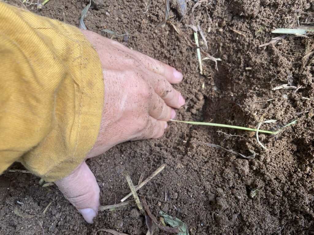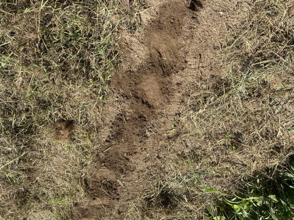 土が埋まってしまって浅くなってたら、手で掘って突っ込みます。深さだけは重要だからです。