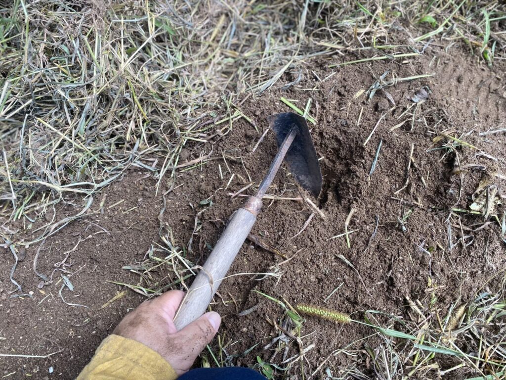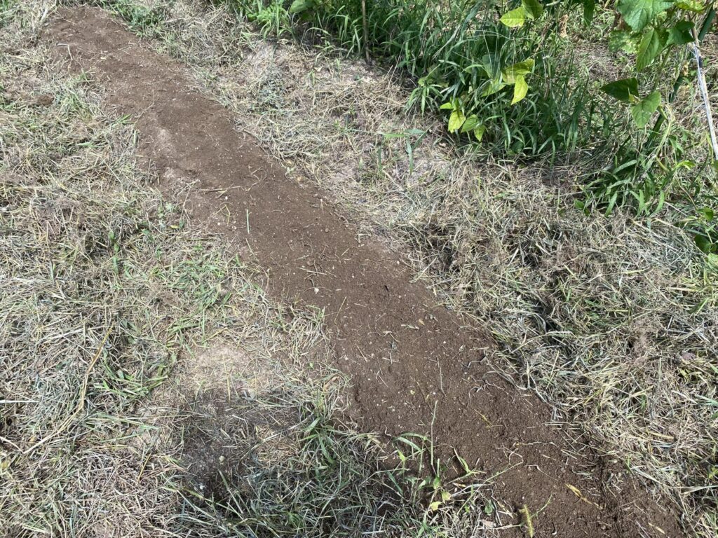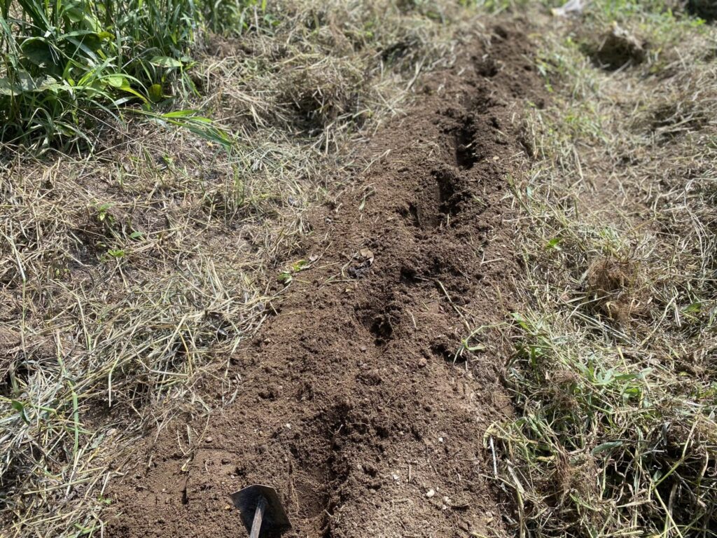 畝の用意ができたので、ジャガイモを植える穴を掘ります。