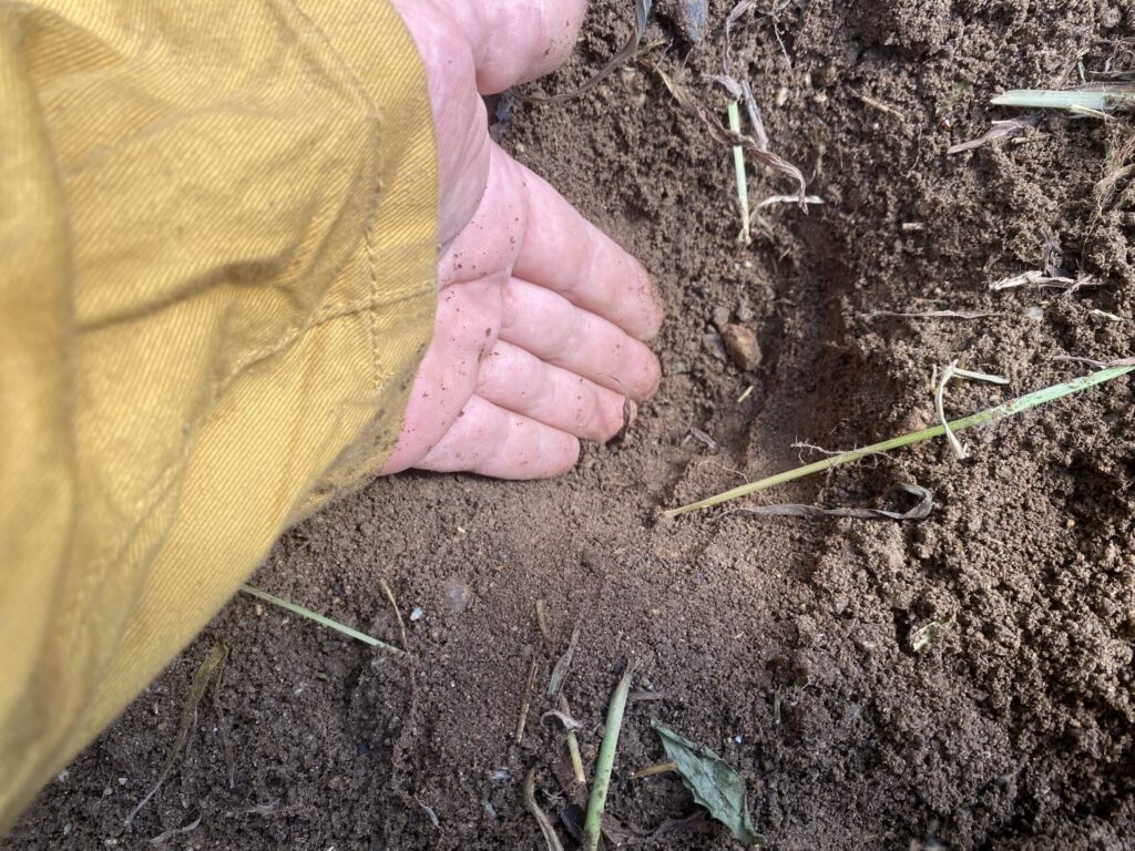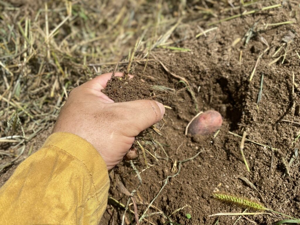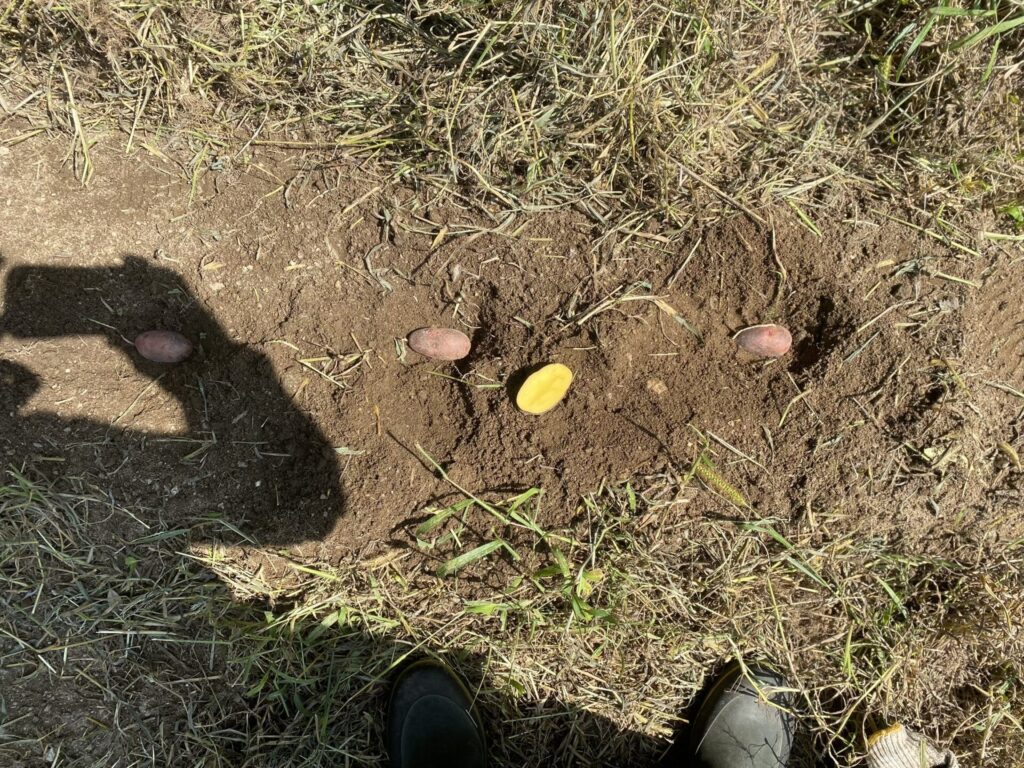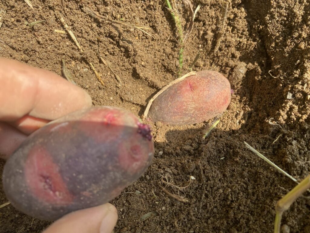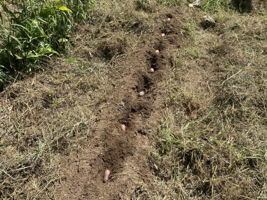 多少埋まっていても、種芋を入れるときに、深めに入れるようにしています。