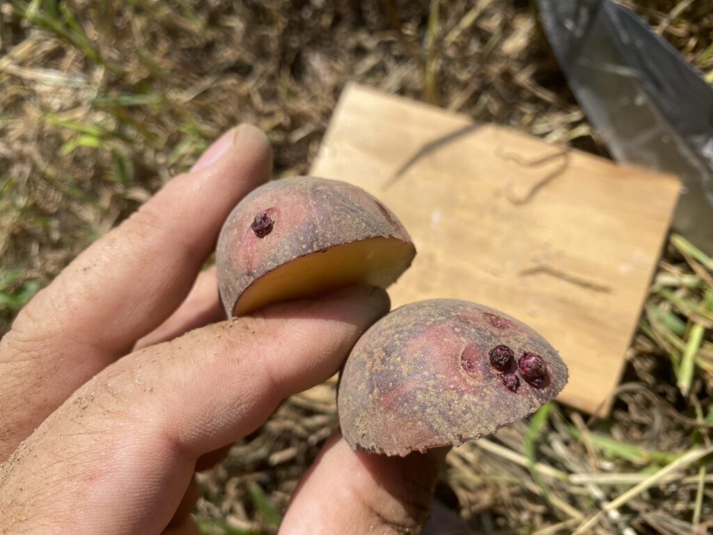 個人的には、かなり小さな芋でも普通に種イモにしますし、小さくても平気でカットします。