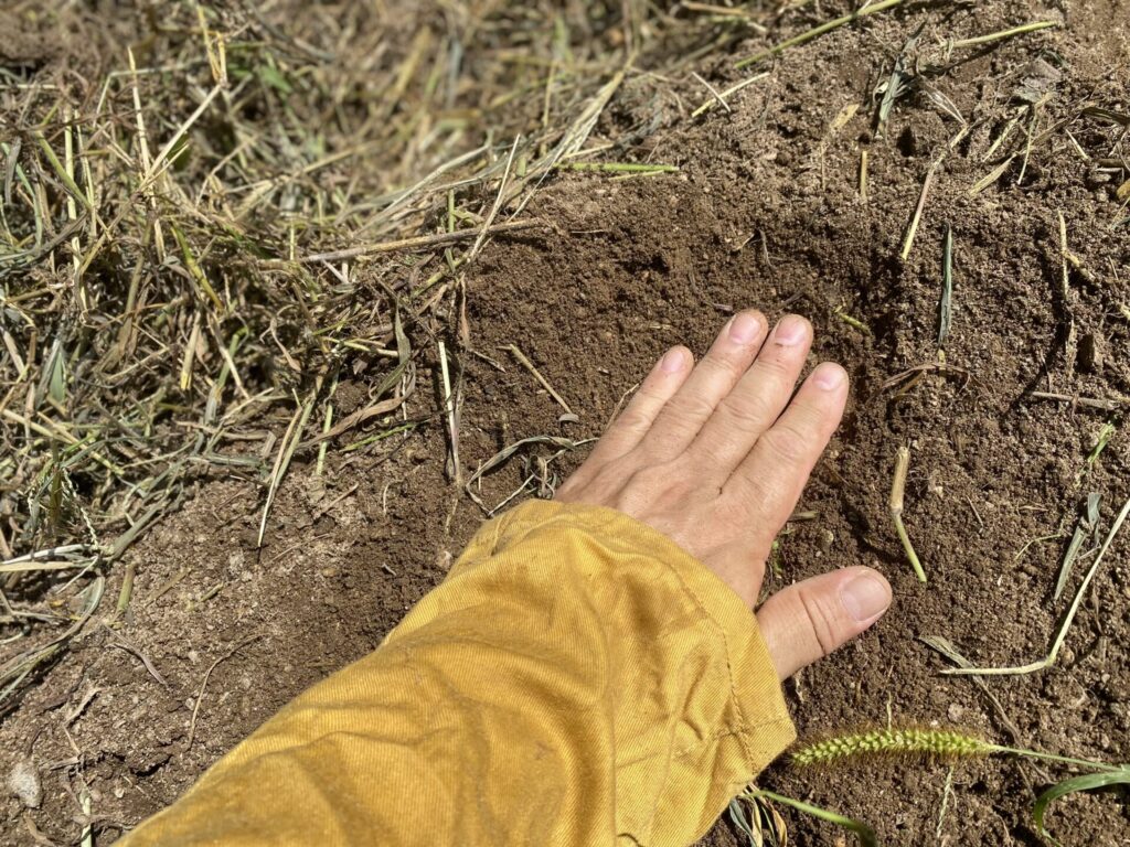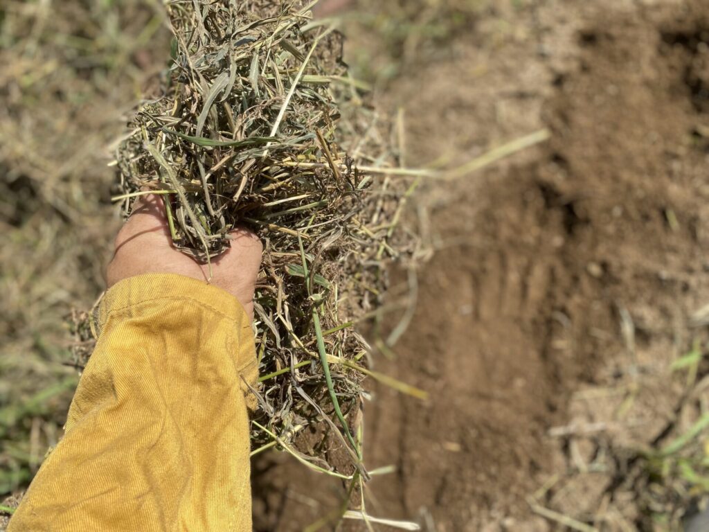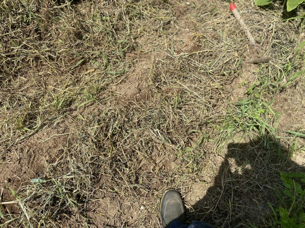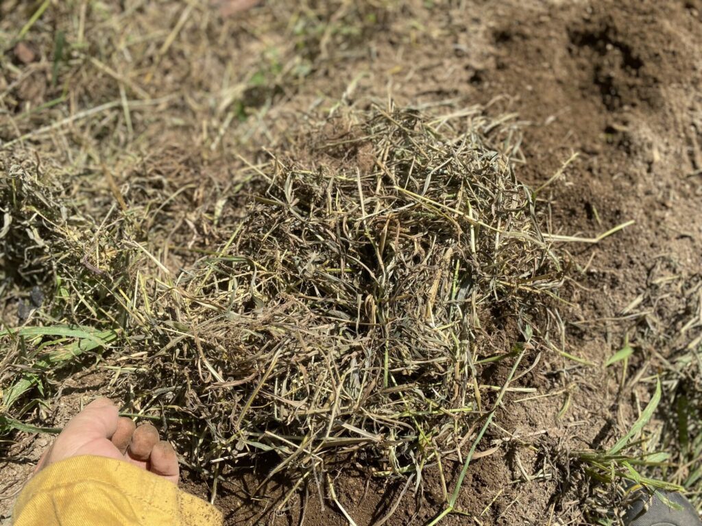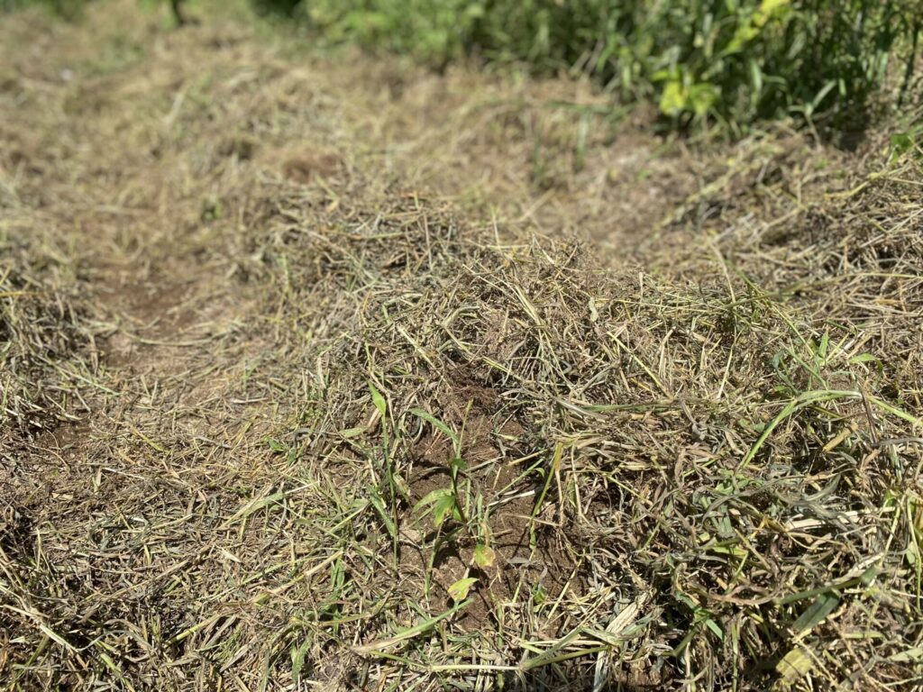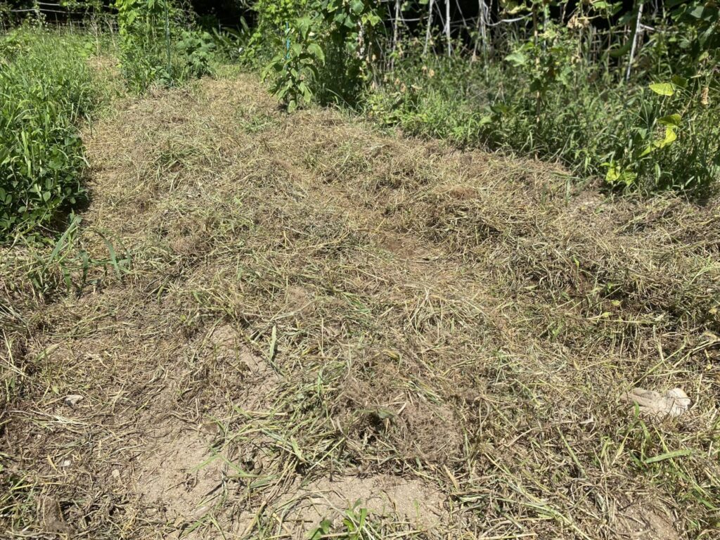 草マルチが湿度や温度を保ってくれているように感じられるように、敷き詰めました。