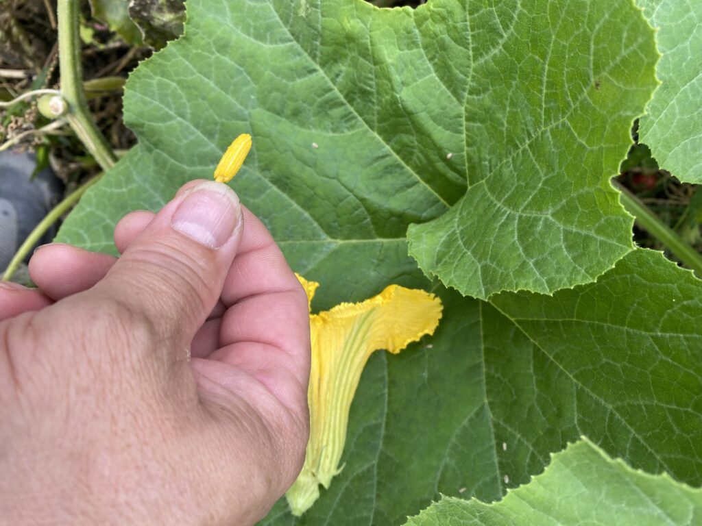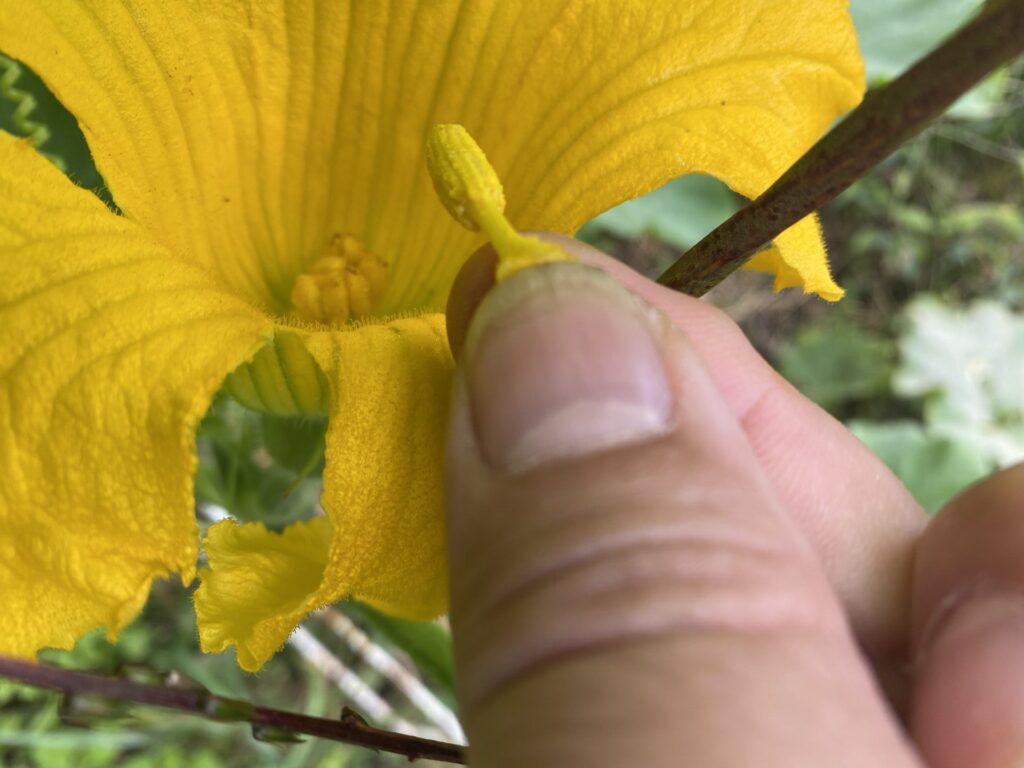 真夏は、ミツバチが受粉してくれていましたので、放置していましたが、受粉が出来ていない雌花が増えてきたので、9月後半からは人工授粉に切り替えました。