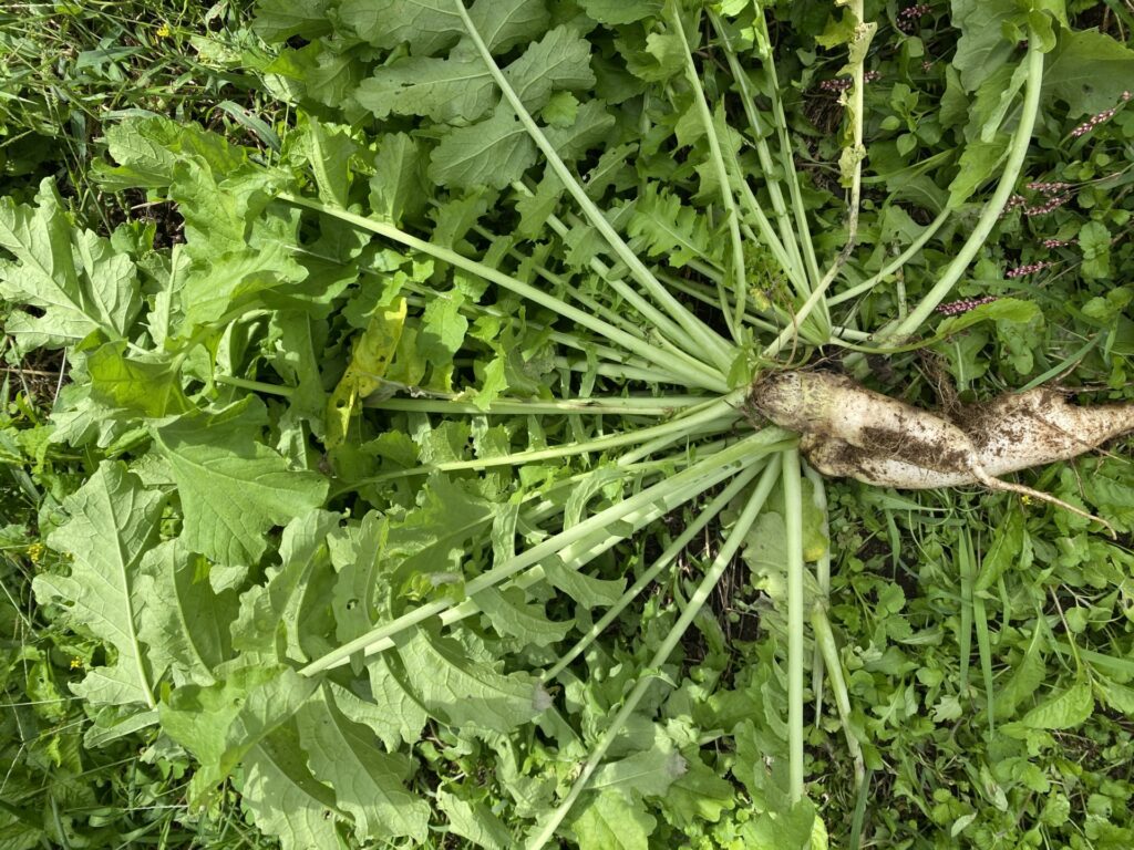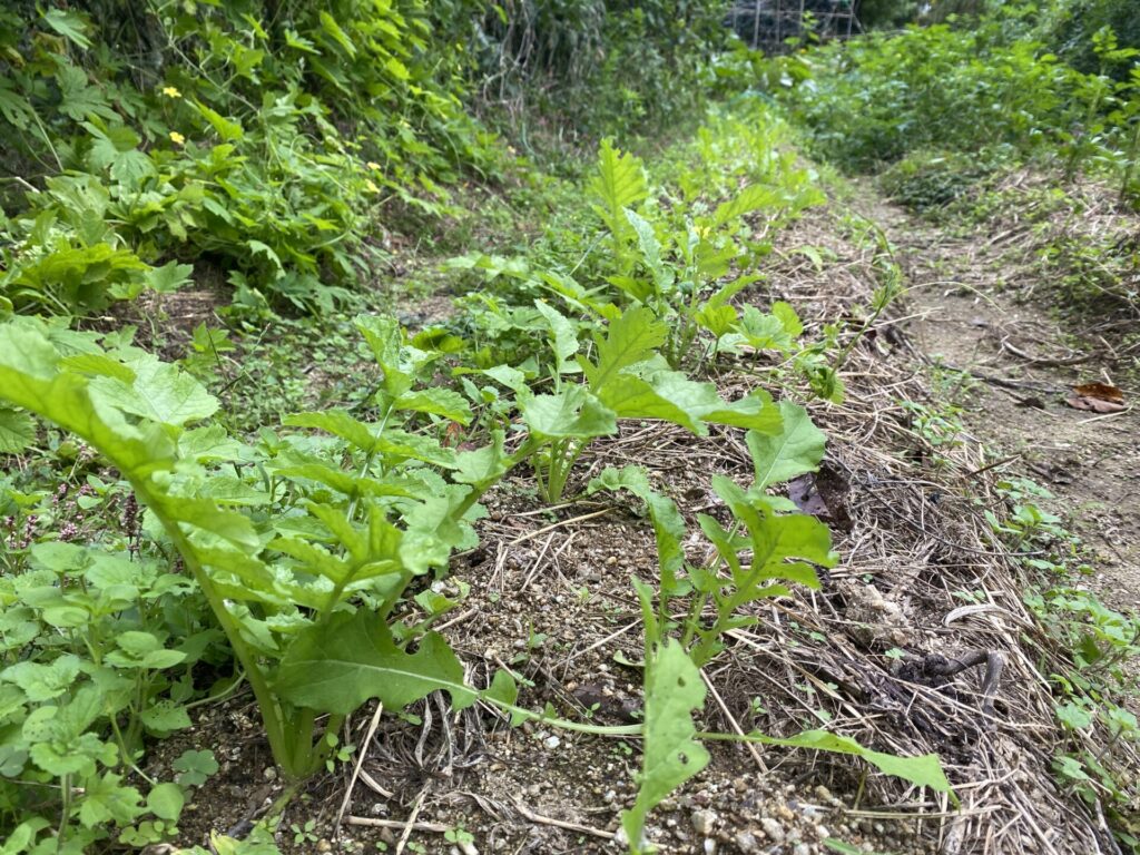 これは、7月とかに種から育った大根ですが、熱波で雨も降らず、成長が止まっていました。