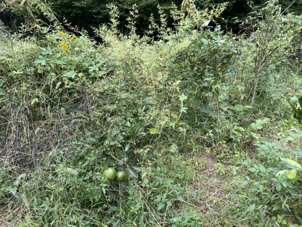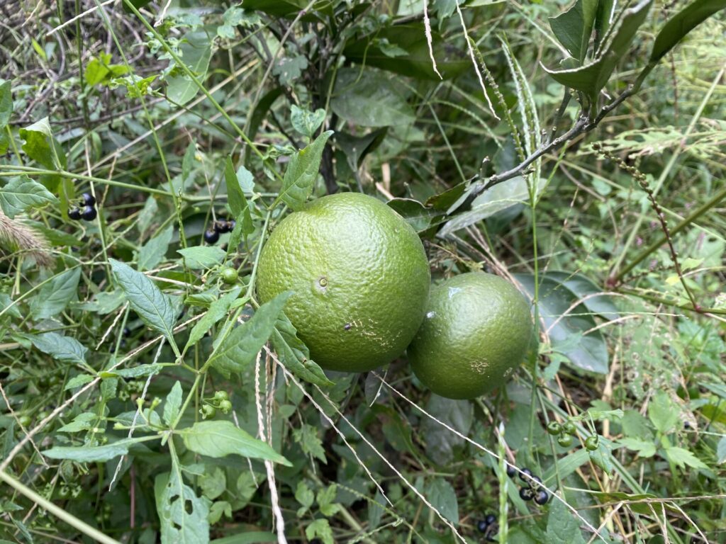 10年くらい前にホームセンターで苗を買って、植木鉢で育てていた みかんの木 2年前に畑の隅に直植えしたら、ようやく初の実が付きました。