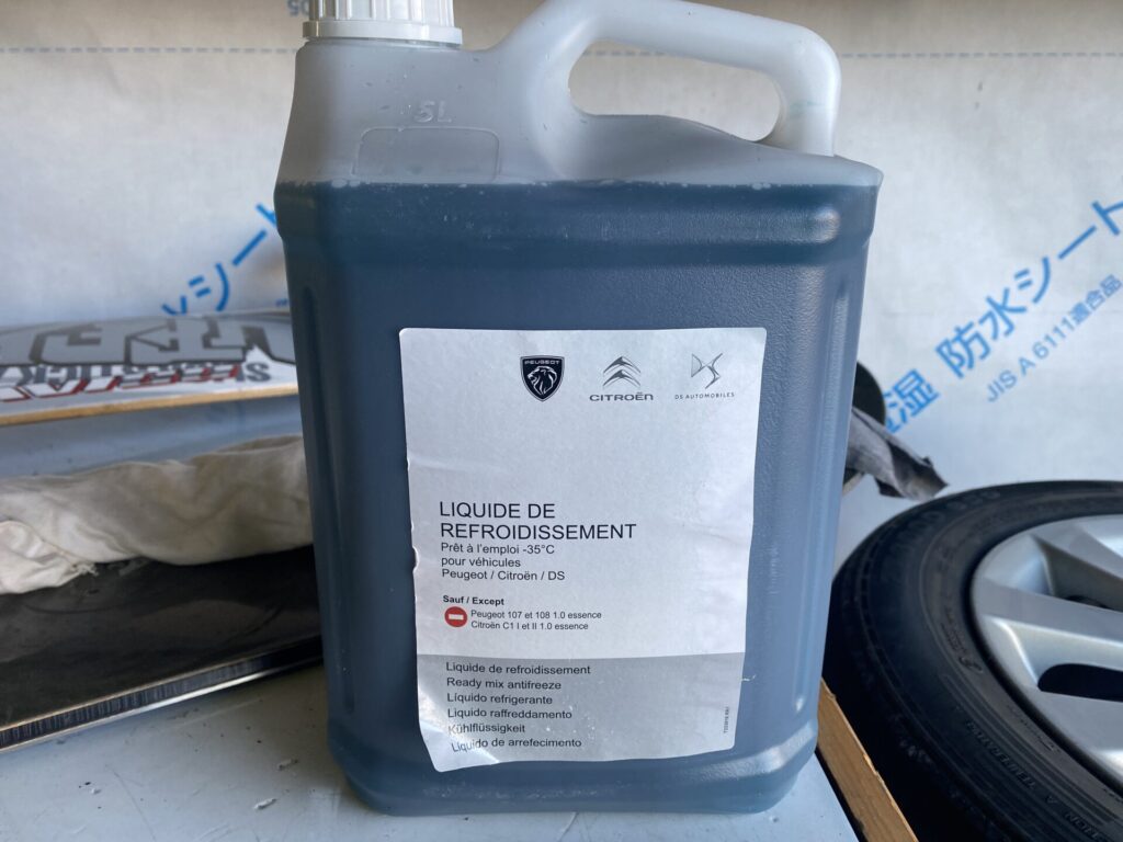 純正の冷却水を5リッター買いましたが、6リッターくらい必要でしたので、後日追加で5リッター買いました。