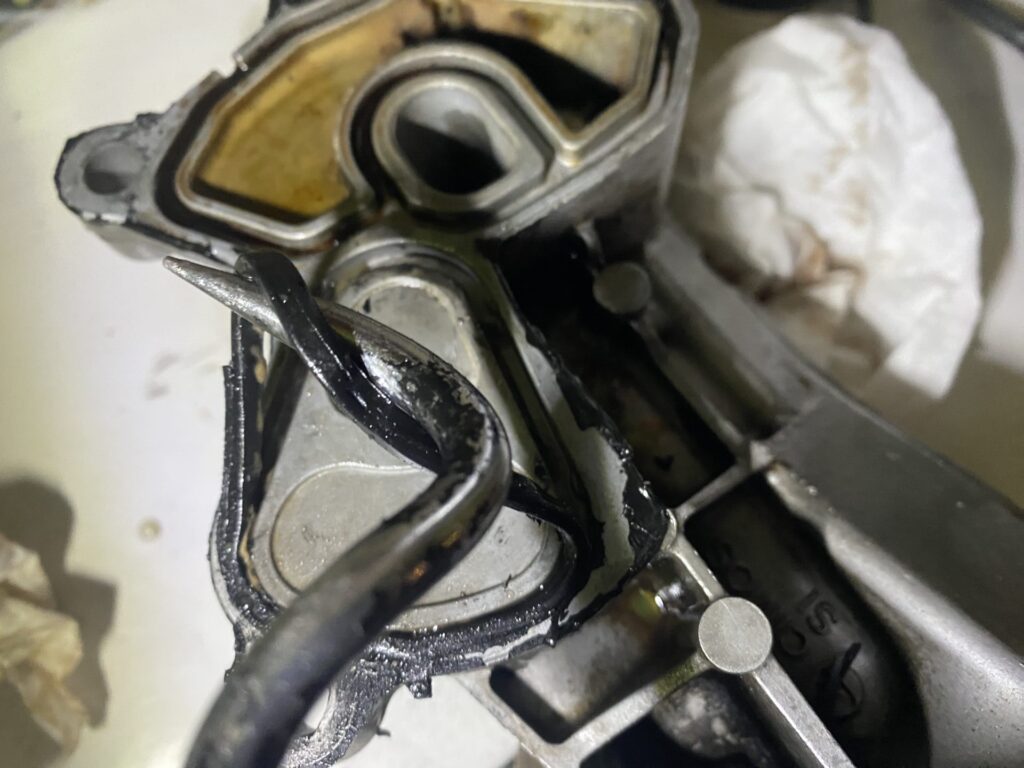 液体ガスケット(黒)を併用したのが、漏れの原因かも・・・と聞きました。