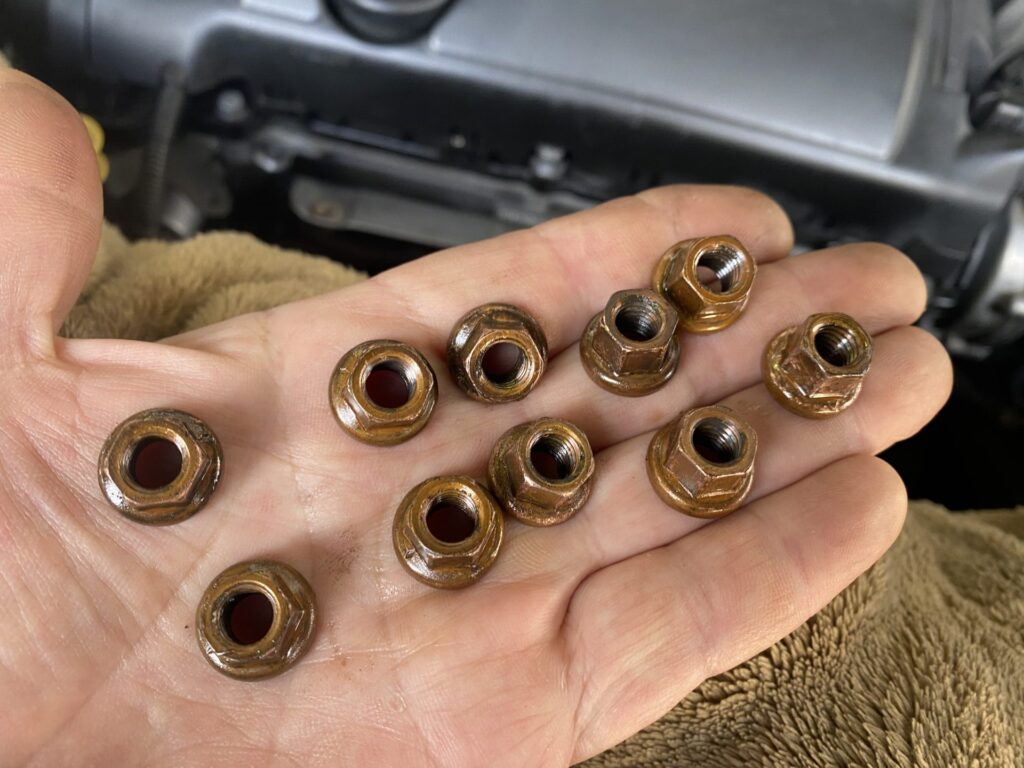 下の数か所は、マフラーが邪魔で、工具が入らないので、知恵の輪のような作業になります。