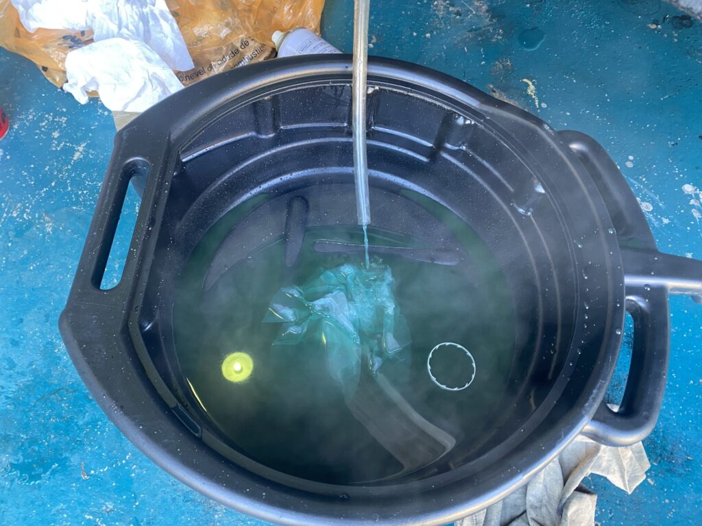 冷却水を薄めすぎると凍ってしまってパッキンを破損させる可能性があるようです。それも怖いし、長年交換していないので、これを機に全量交換する事にしました。