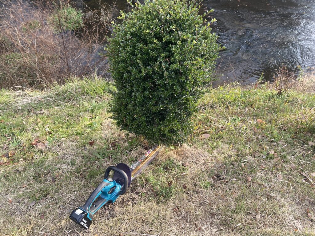 こちらは、元々、駐車場に植えてあったので、土手に移動しましたが、枝が太くて葉が少ないので、切るところがありませんでした。