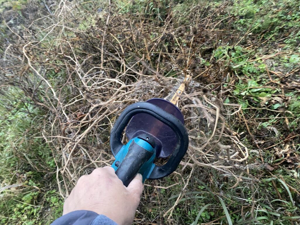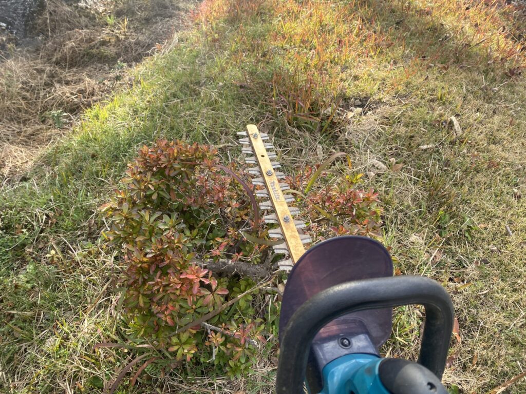 いつも畑の草刈りに使っている マキタの生垣バリカン です。