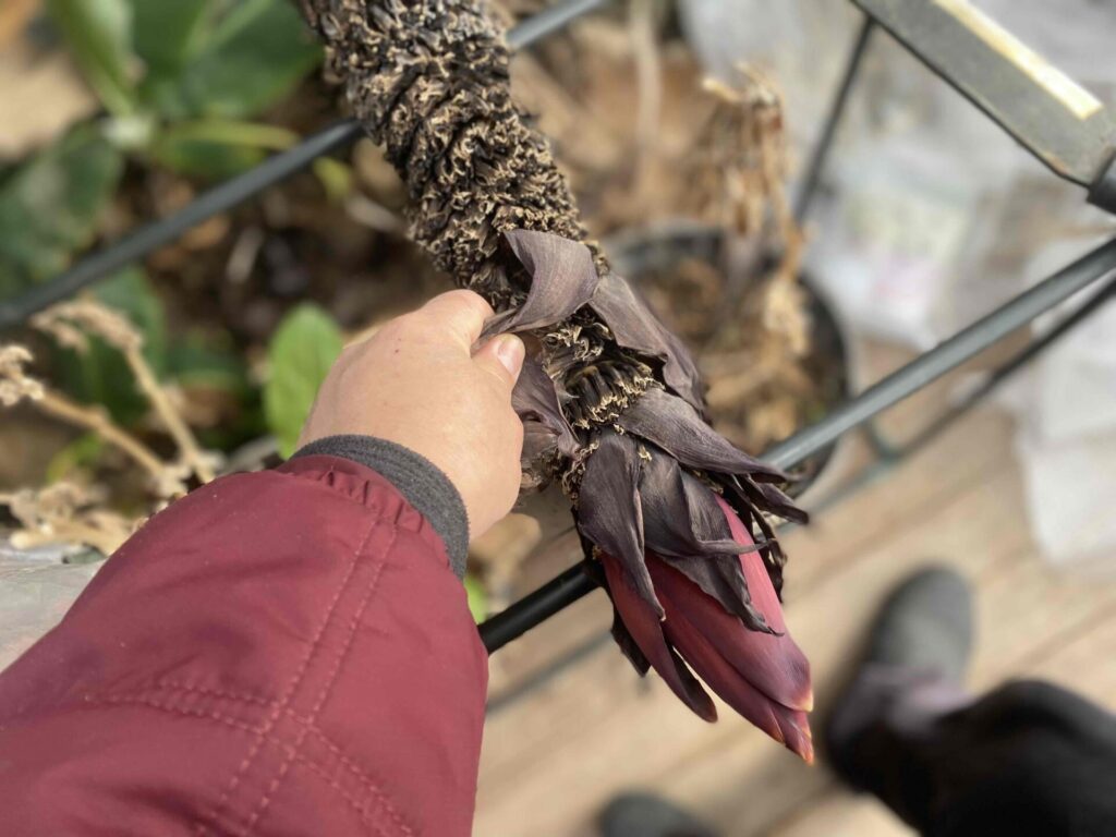 これがバナナの花らしいですが、付けっぱなしにしてたので、枯れてしましました。
