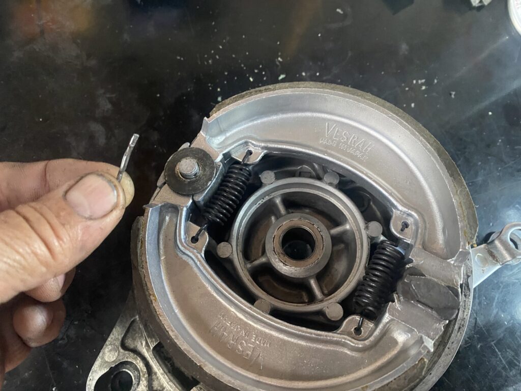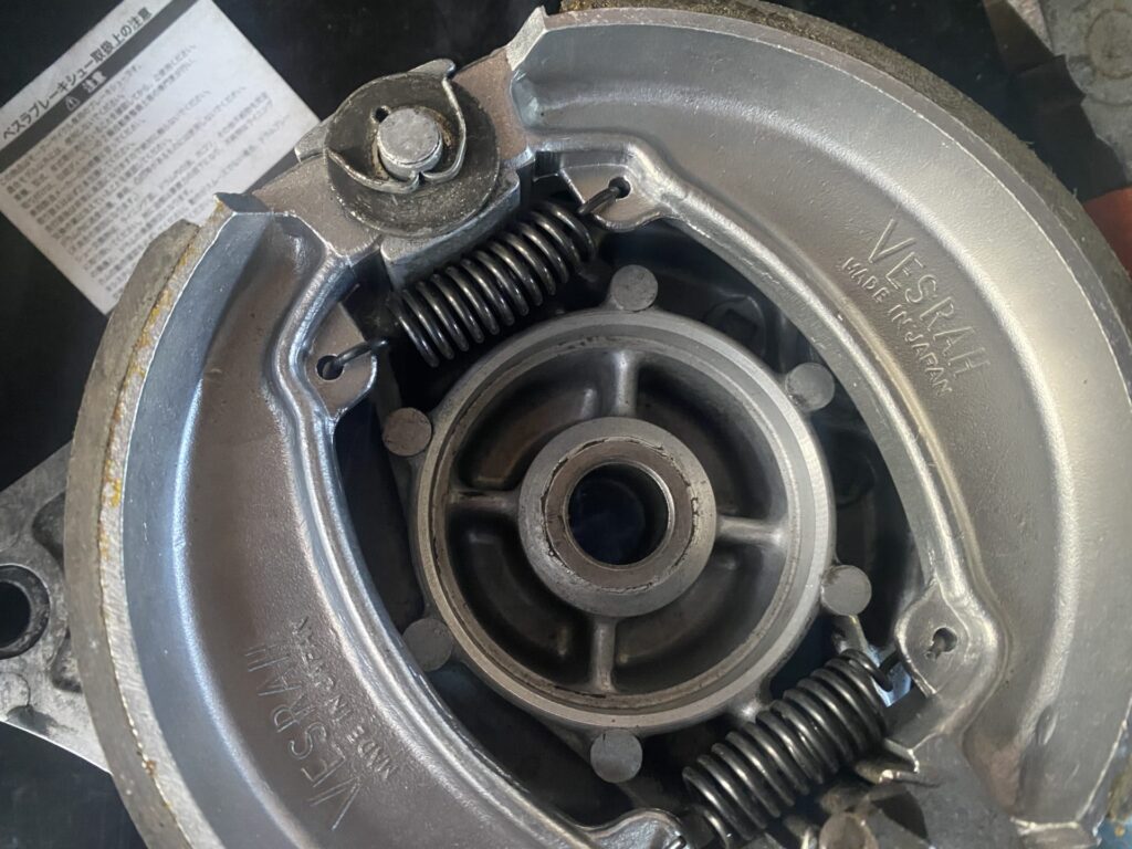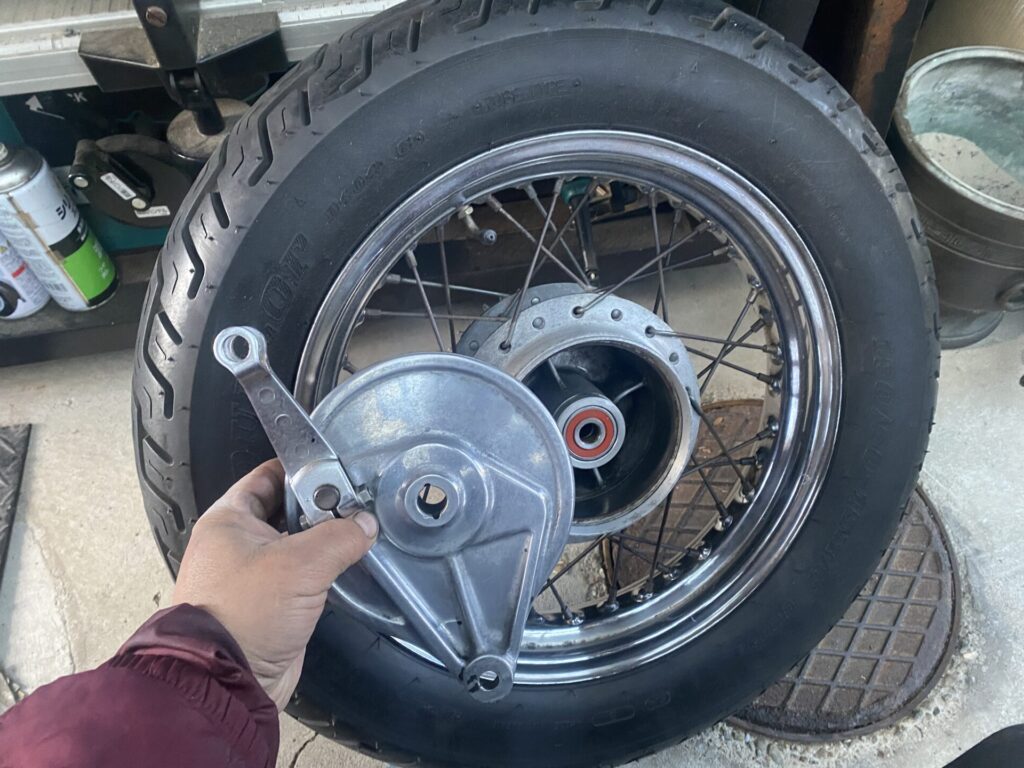先日、後輪のベアリングを新品に交換したので、タイヤ外しているついでにブレーキシューも交換する事にしました。